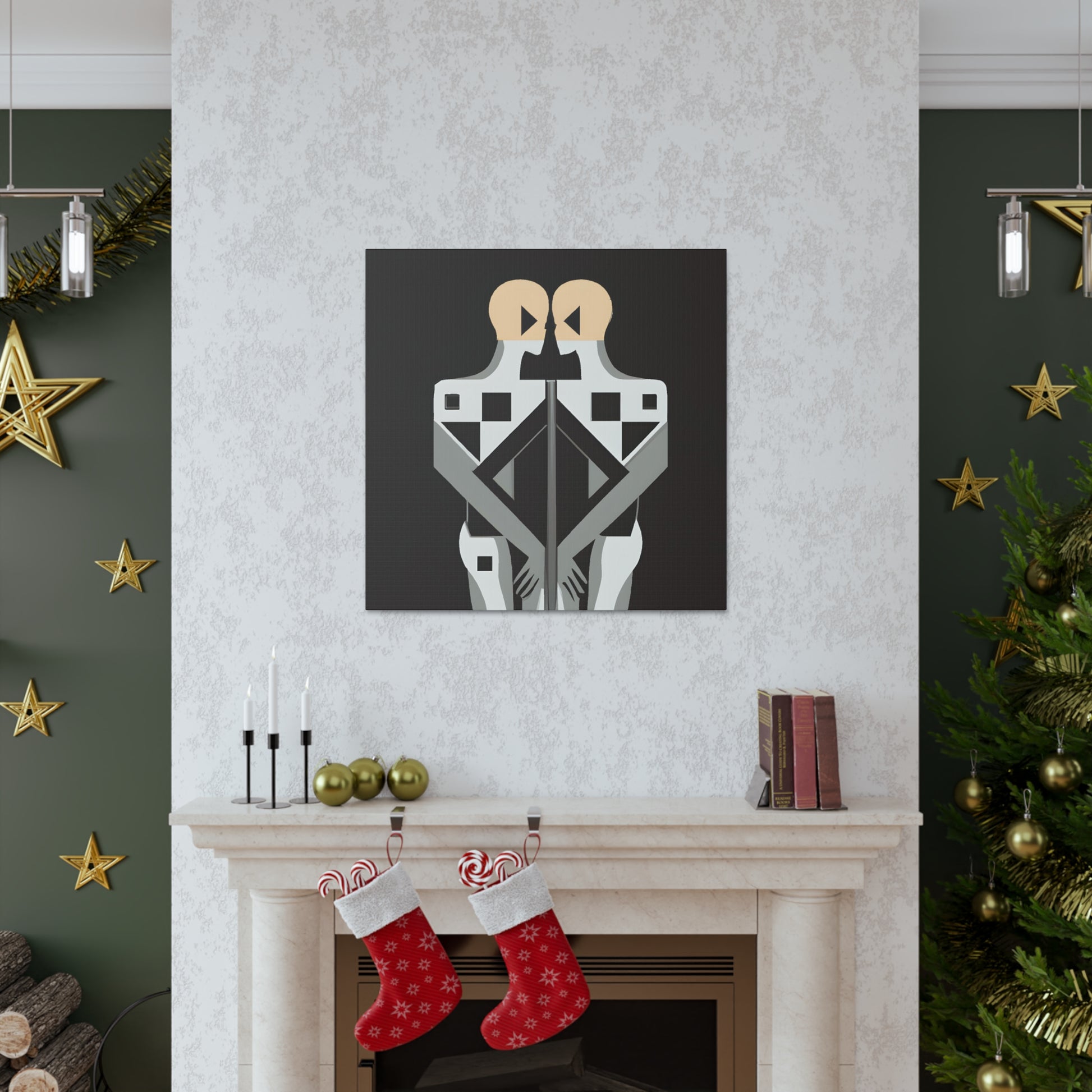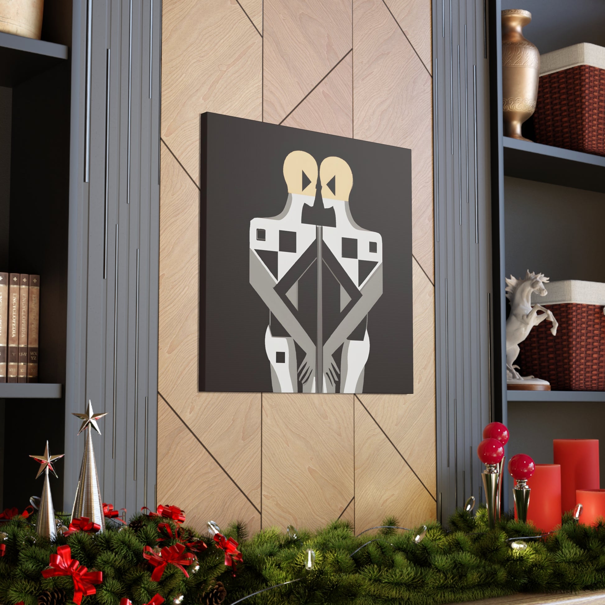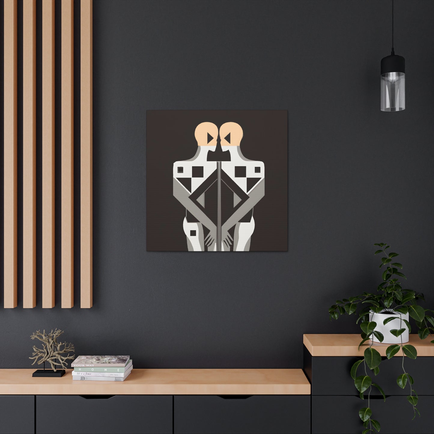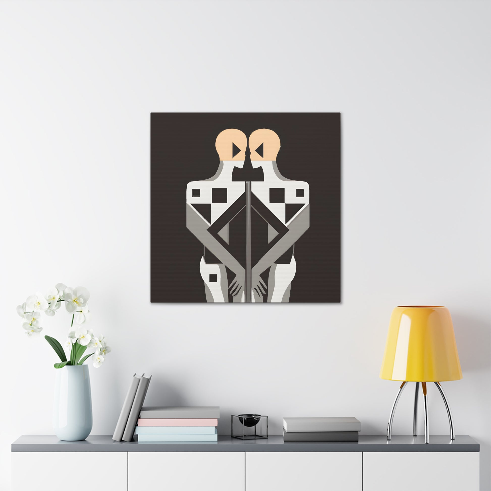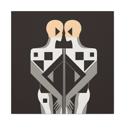 This contemporary digital art piece is a stunning representation of modern LGBTQ+ culture and the power of togetherness. Featuring two figures intertwined in intricate geometric patterns and rendered in a modern, minimalist art style, it conveys the strength of protection, acceptance and unity that two individuals share in togetherness. Add a bit of pride and passion to your home or office with this uniquely powerful canvas. #gayart #gaycoupleart #lgbtq+ #lgbtq #equality #unity #digitalart #modernart #minimalism #pride #passion