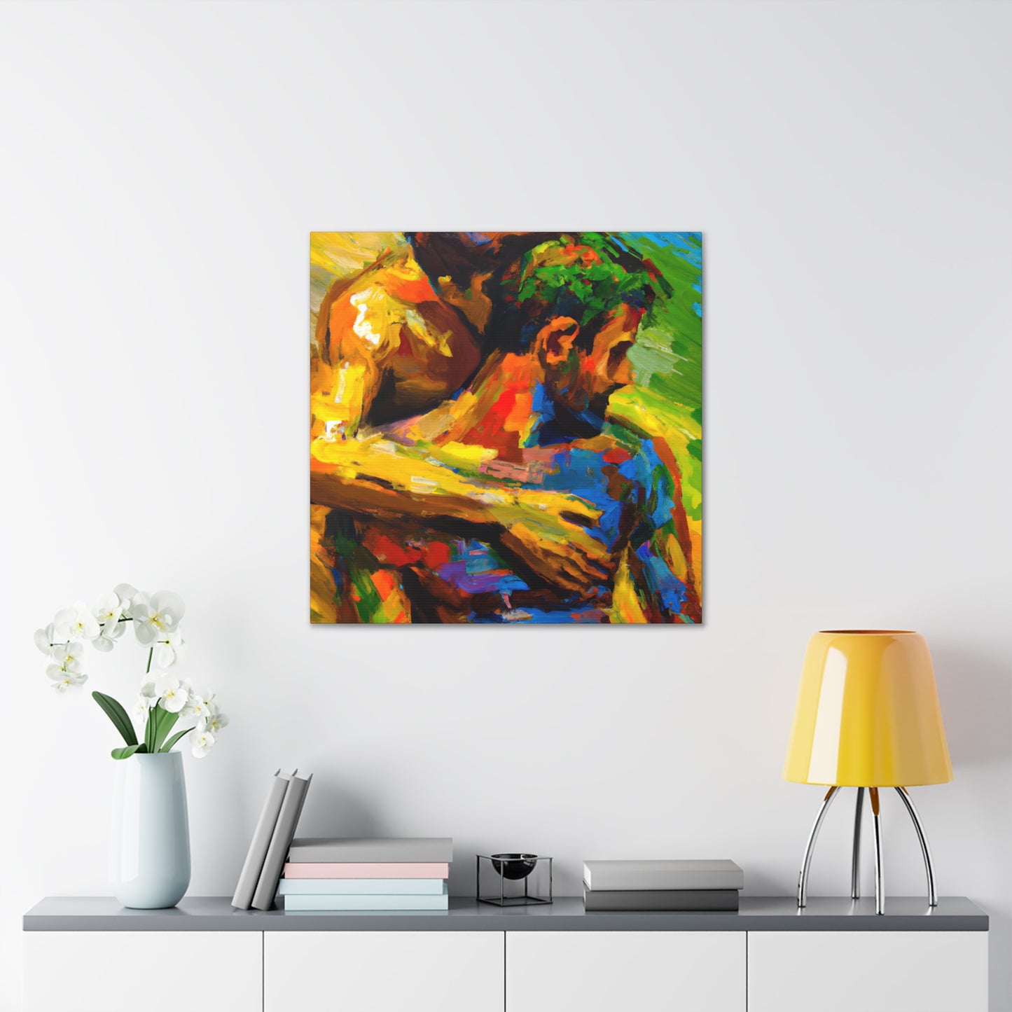 Discover the Artotheus - Gay Couple Wall Art. Perfect for anyone who wants to celebrate their identity or show support for the LGBTQ+ community. With vibrant colors and a powerful message, this piece is more than just decor; it's an expression of pride, love and solidarity.