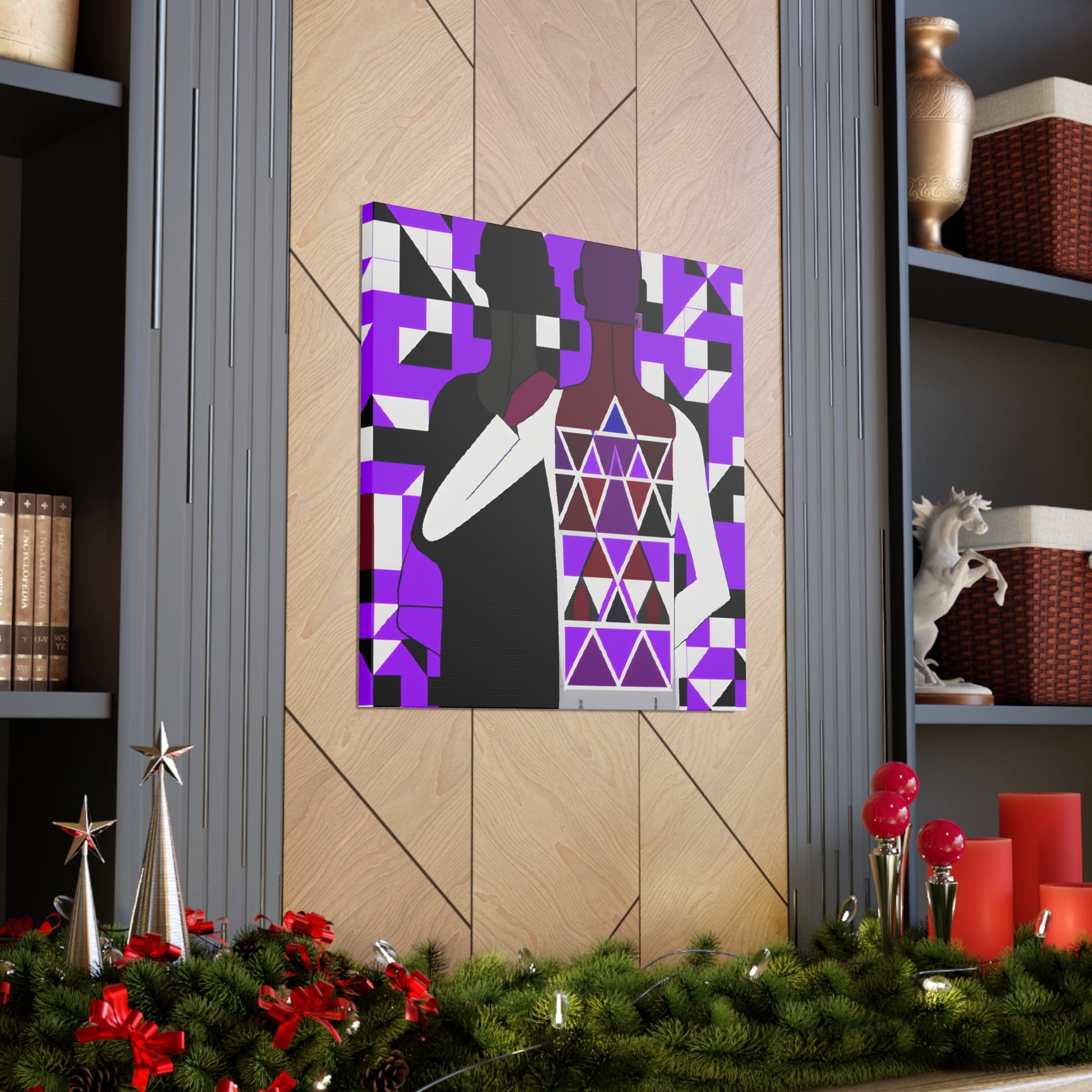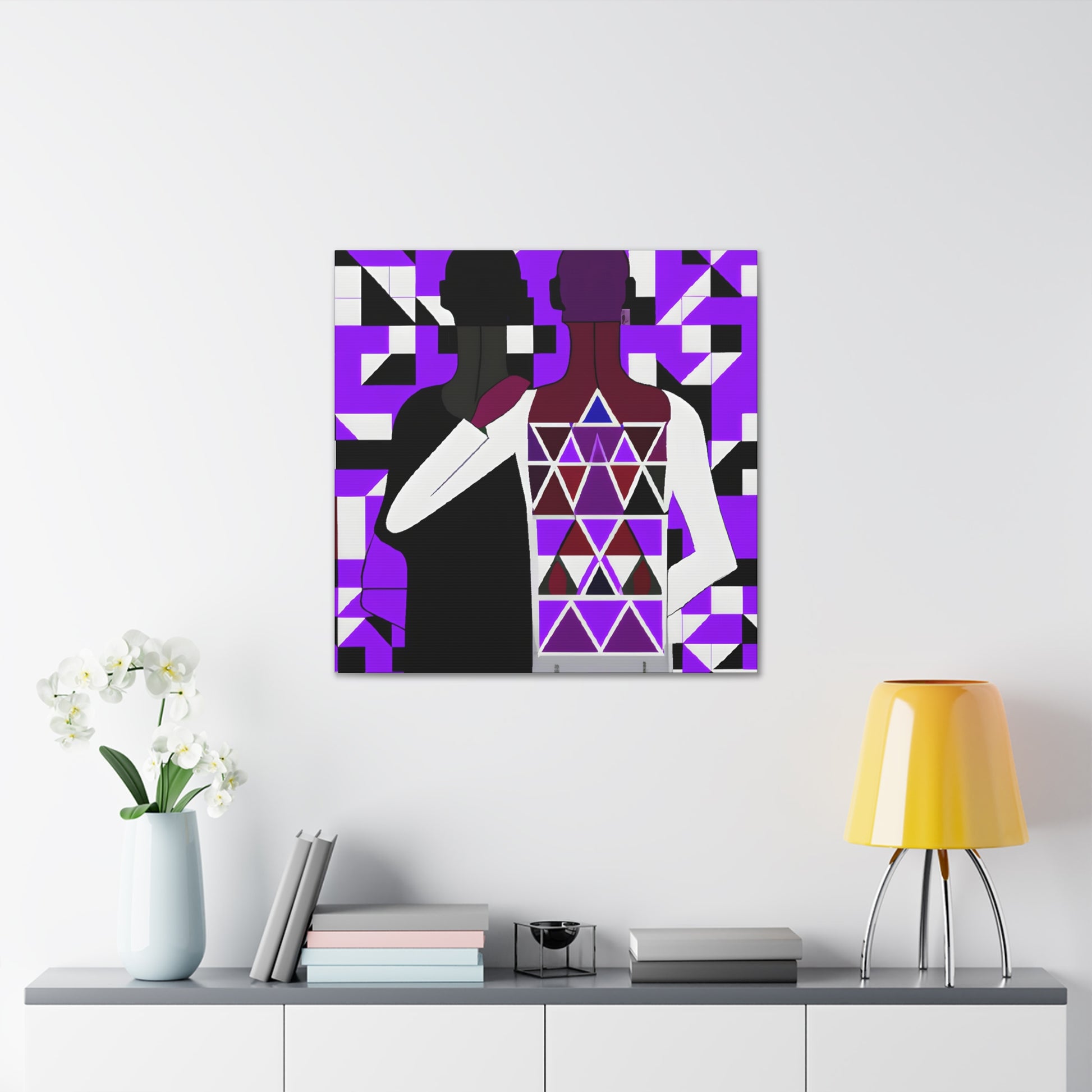 This vibrant and powerful digital art piece finely illustrates the strength and unity of the LGBTQ+ community. It features two individuals standing back to back, their bodies intertwined with intricate geometric shapes, a modern and minimalist style. This canvas is a statement piece that speaks to every viewer, representing the progress made and the connections formed within the LGBTQ+ community. #gayart #gaycoupleart #lgbtqart #canvasart #unifiedart #communityart #progressart #rainbowart #modernart #digitallart #LGBTQ+art