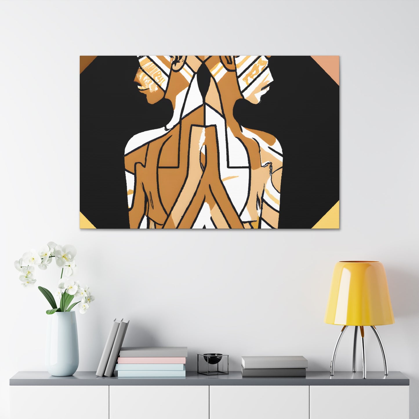 This canvas is an impressive work of art that speaks to the power and unity of the LGBTQ+ community. It features two individuals standing back to back in an intricate web of geometric patterns. Translating this powerful message into a modern and minimalist design, this digital art piece is striking and captivating. Filled with meaning and emotion, this canvas will be the perfect addition to any home or office. #gayart #gaycoupleart #lgbt #lgbtq+ #lgbtqia #gaypride #geometricart #modernart #minimalistart #digitalart #gaylove