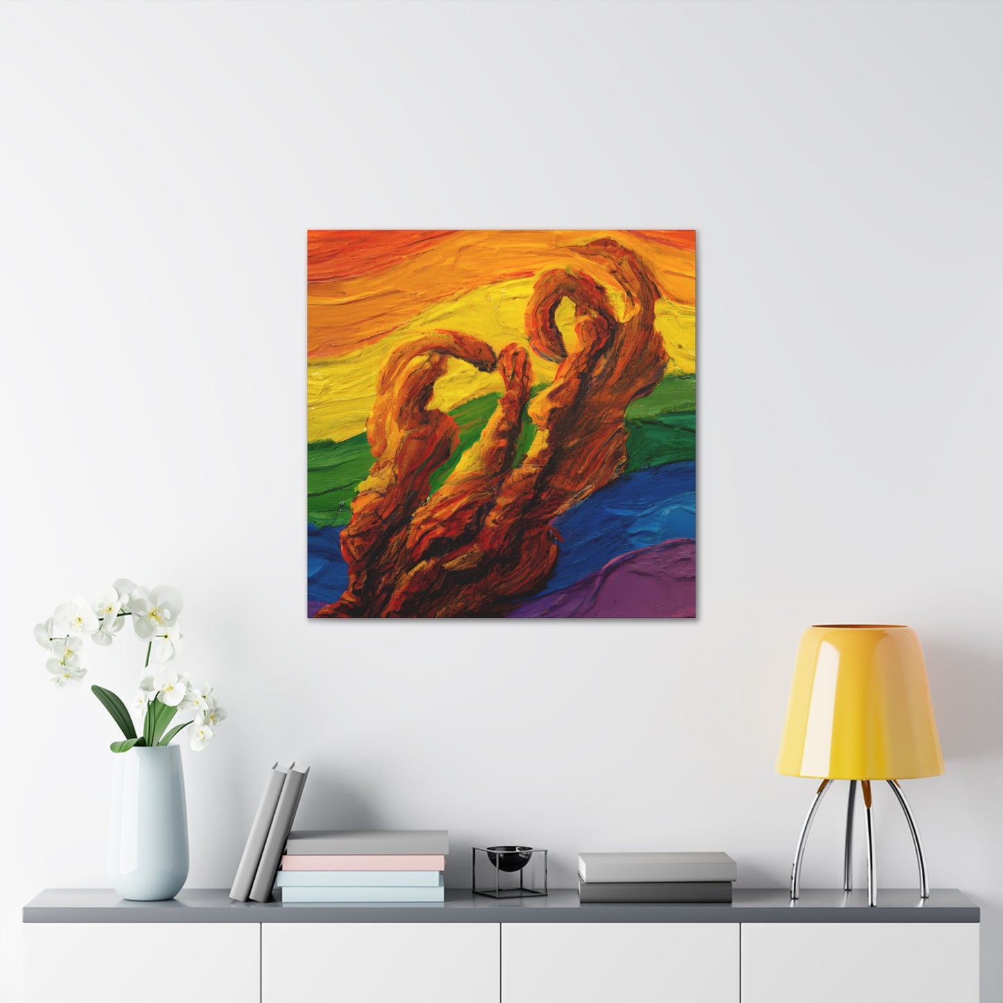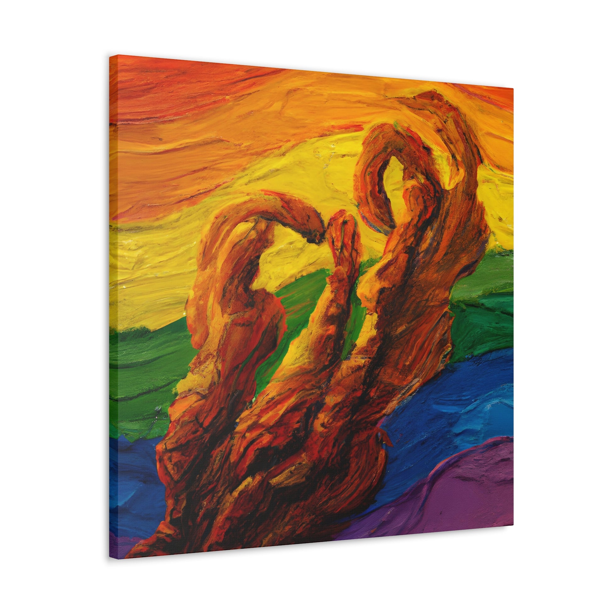 This stunning canvas of oil painting expresses queer beauty and resilience. The swirling and textured composition, full of bright rainbow colors, conveys the protagonist’s unique perspective and emotional turbulence. Illuminated by warm, golden hues, this digital art gives hope and stands as a promise of brighter days. #gayart #queerart #oils #oilpainting #rainbowart #digitalart #expressionism #hope #vibrantcolors #brushwork #goldenhues