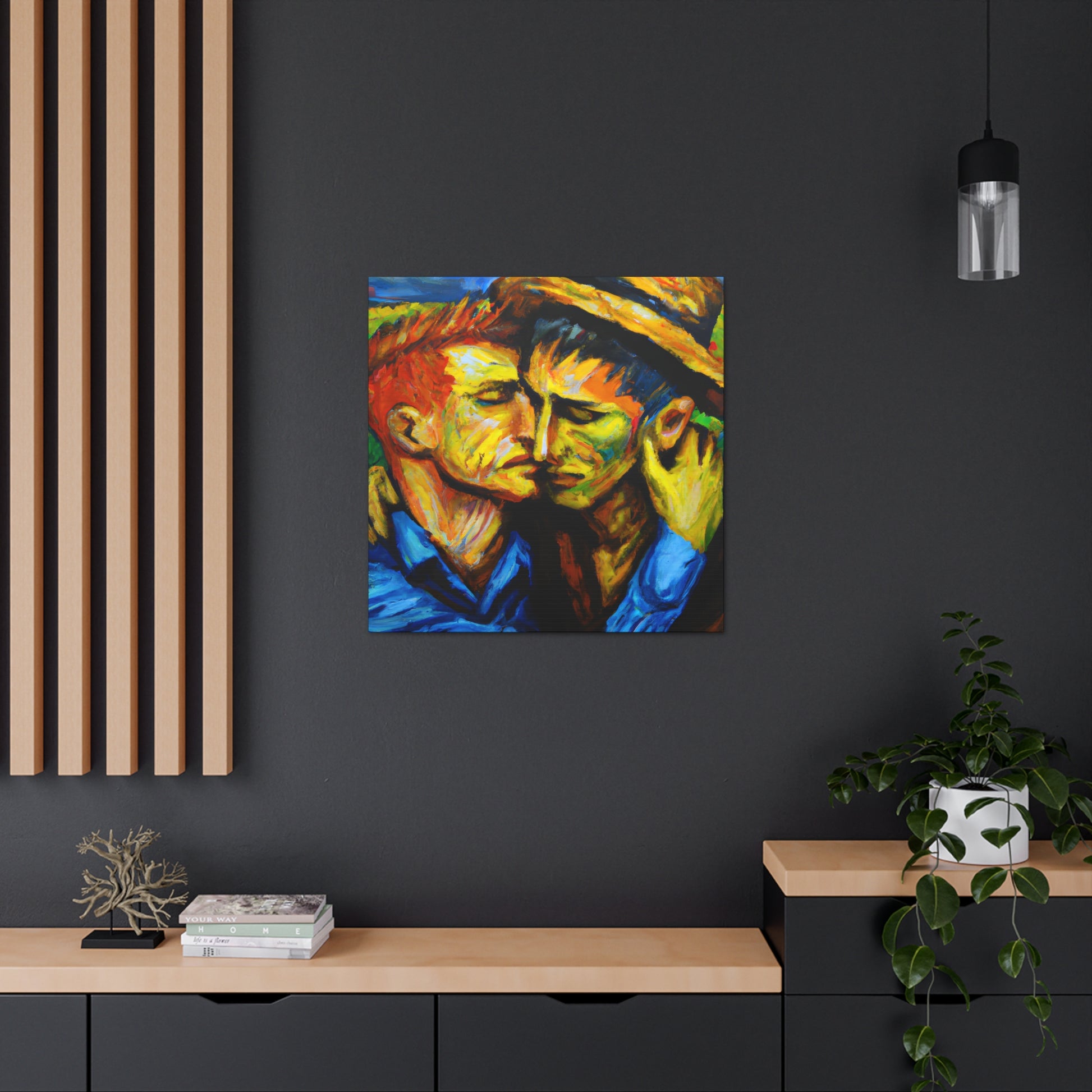 Discover the FrancescoArt - Gay Couple Wall Art. Perfect for anyone who wants to celebrate their identity or show support for the LGBTQ+ community. With vibrant colors and a powerful message, this piece is more than just decor; it's an expression of pride, love and solidarity.