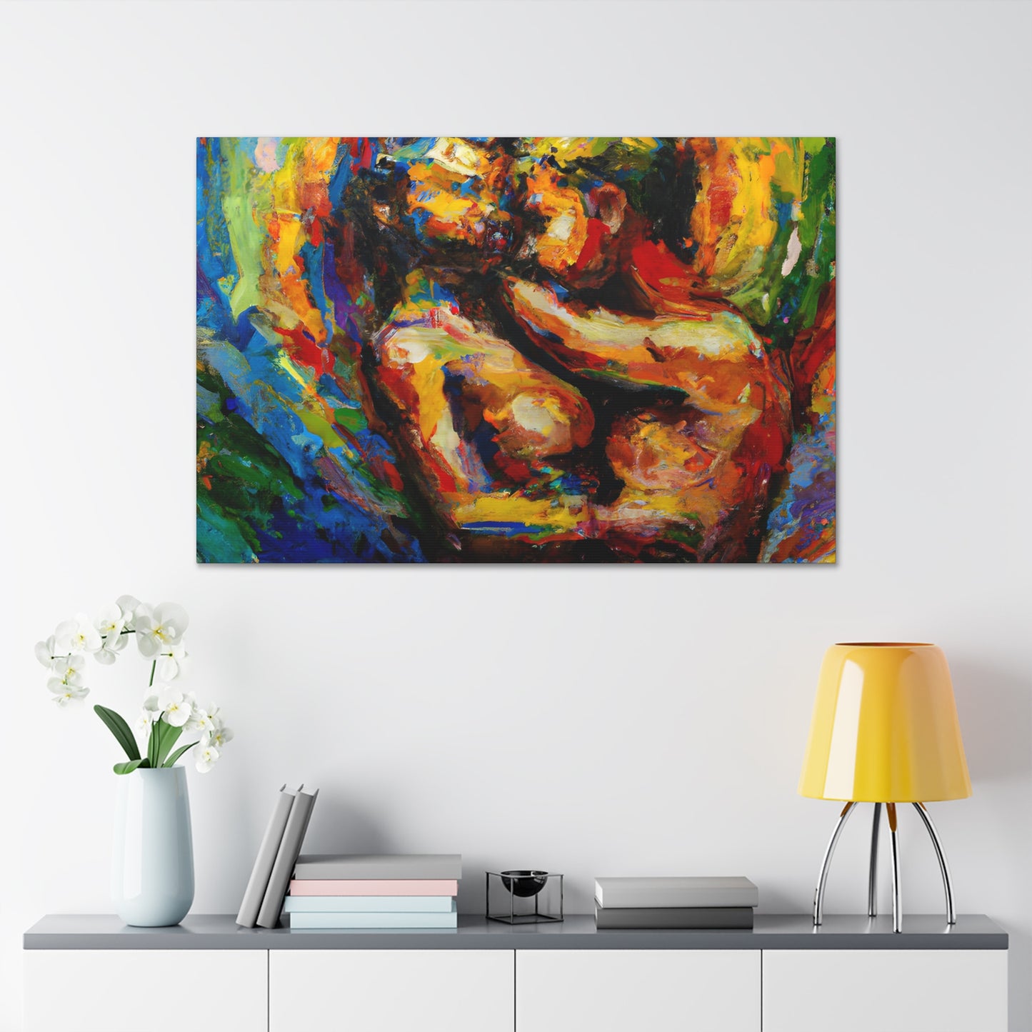 Discover the FrescoPainter - Gay Couple Wall Art. Perfect for anyone who wants to celebrate their identity or show support for the LGBTQ+ community. With vibrant colors and a powerful message, this piece is more than just decor; it's an expression of pride, love and solidarity.