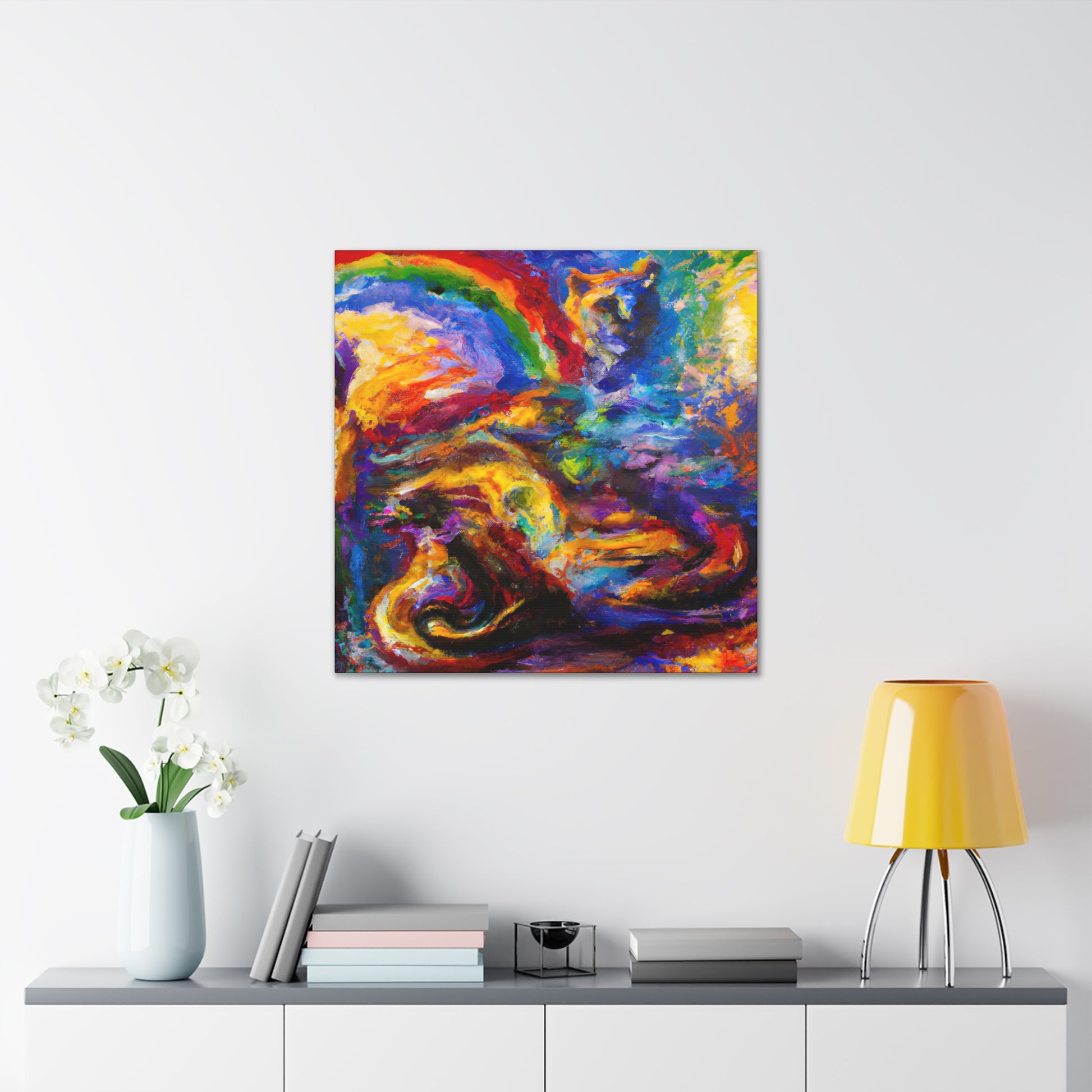 This digital art canvas brings a vibrant, swirling composition of colors, brushwork, and texture to your home. You can almost feel the protagonist's unique perspective and emotional turbulence. Golden hues provide a layer of warmth and hope, creating a bright and resilient atmosphere. Hang this exceptional canvas in your living room for a nightly reminder of positivity and courage. #gayart #oilpainting #canvas #digitalart #swirlingtextures #vibrantcolors #warmeffect #couragebrave #resiliencehope #expressionemotion #empowermentstrength #illuminatewarmth