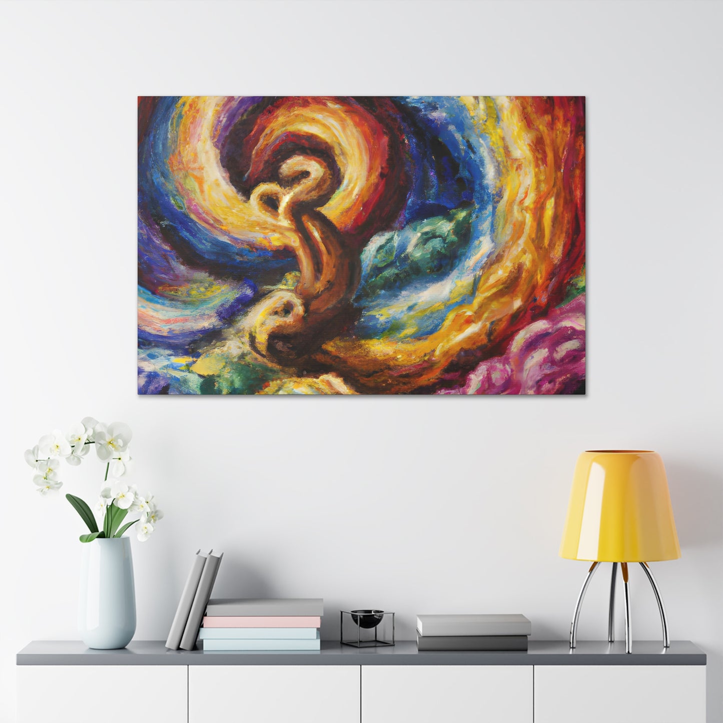 This stunning original canvas painting features a swirling, textured composition of vibrant colors and expressive brushstrokes, exuding the protagonist's unique perspective and emotional turmoil. Illuminated by warm, golden hues, the painting conveys a sense of hope and resilience, perfect for adding energy and inspiration to any living room. This digital art is an inspiring addition, bringing light and a sense of possibility to any home. #gayart #digitalart #canvasart #hopepainting #livingroomdecor #texturedart #brushwork #expressivestrokes #resilienceart #vibrantcolors #goldenhues