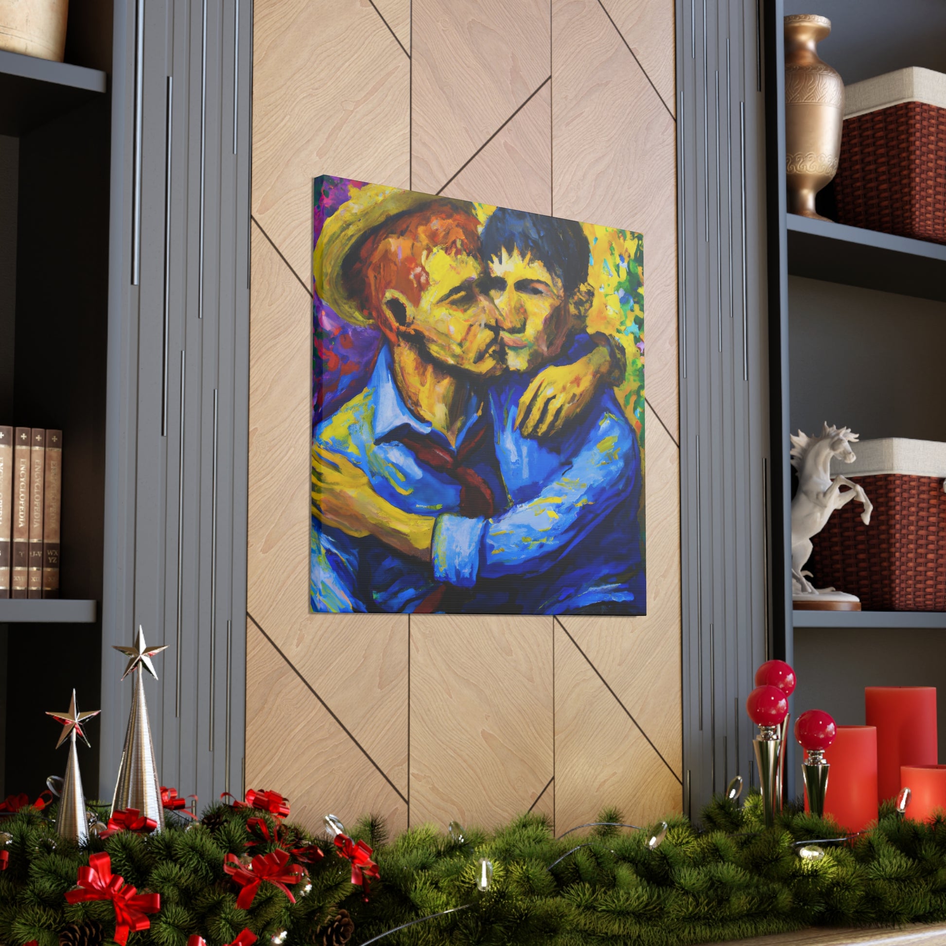 Discover the RadiantRembrandt - Gay Couple Wall Art. Perfect for anyone who wants to celebrate their identity or show support for the LGBTQ+ community. With vibrant colors and a powerful message, this piece is more than just decor; it's an expression of pride, love and solidarity.